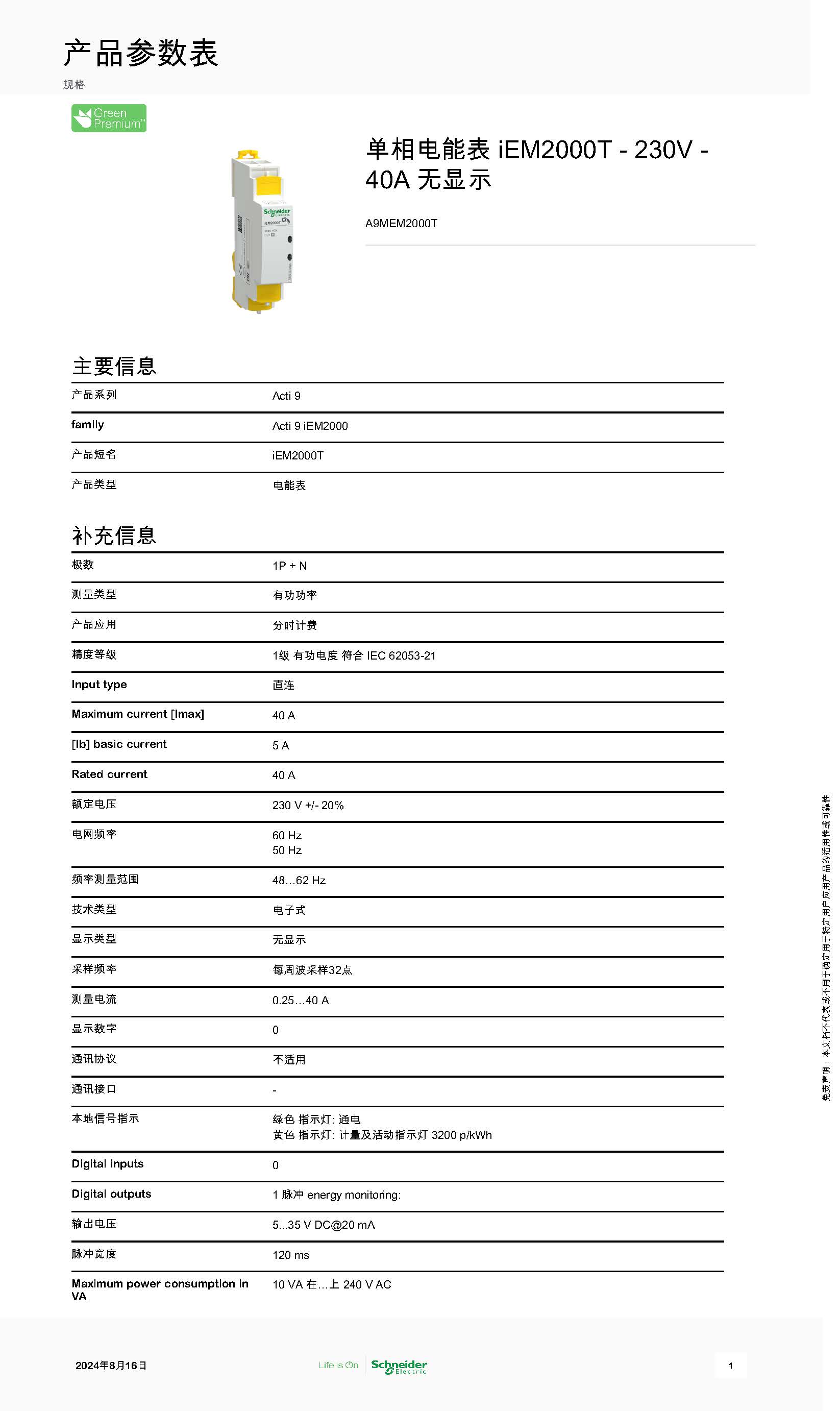 单相电能表iEM2000T-230V-40A
